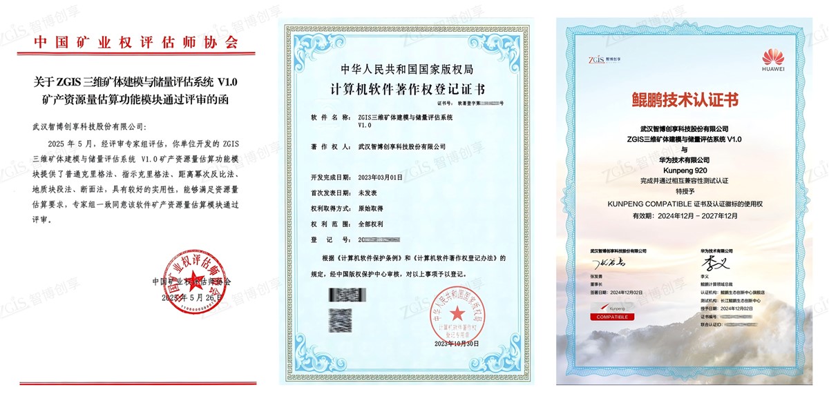 值此行业技术革新关键期,我国资源量估算软件评审工作在暂停十年后于2024年重启,为国产资源量估算软件发展带来了全新机遇。2025年,智博创享团队自主研发的ZGIS Mine矿产资源量估算软件诞生并成功通过自然资源部储量司领导、中国矿业权评估师协会的权威评审认证。目前,该软件已完成信创环境的适配认证,能够在信创环境中稳定运行。
