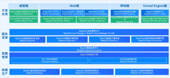 作为MapGIS信创布局的核心成果,MapGIS 10.7 Pro全空间智能GIS平台构建起覆盖云产品、开发产品、工具产品的全栈产品体系,实现从数据生产、数据管理、服务支撑到开发应用的全流程国产化能力覆盖,真正做到多端适配、全场景赋能。