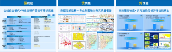 在全栈技术与强势创新的支撑下,MapGIS 形成了好性能、优质量、强底座的国产化替代核心优势,让国产GIS不仅实现“可用”,更做到“好用、易用、高效用”。